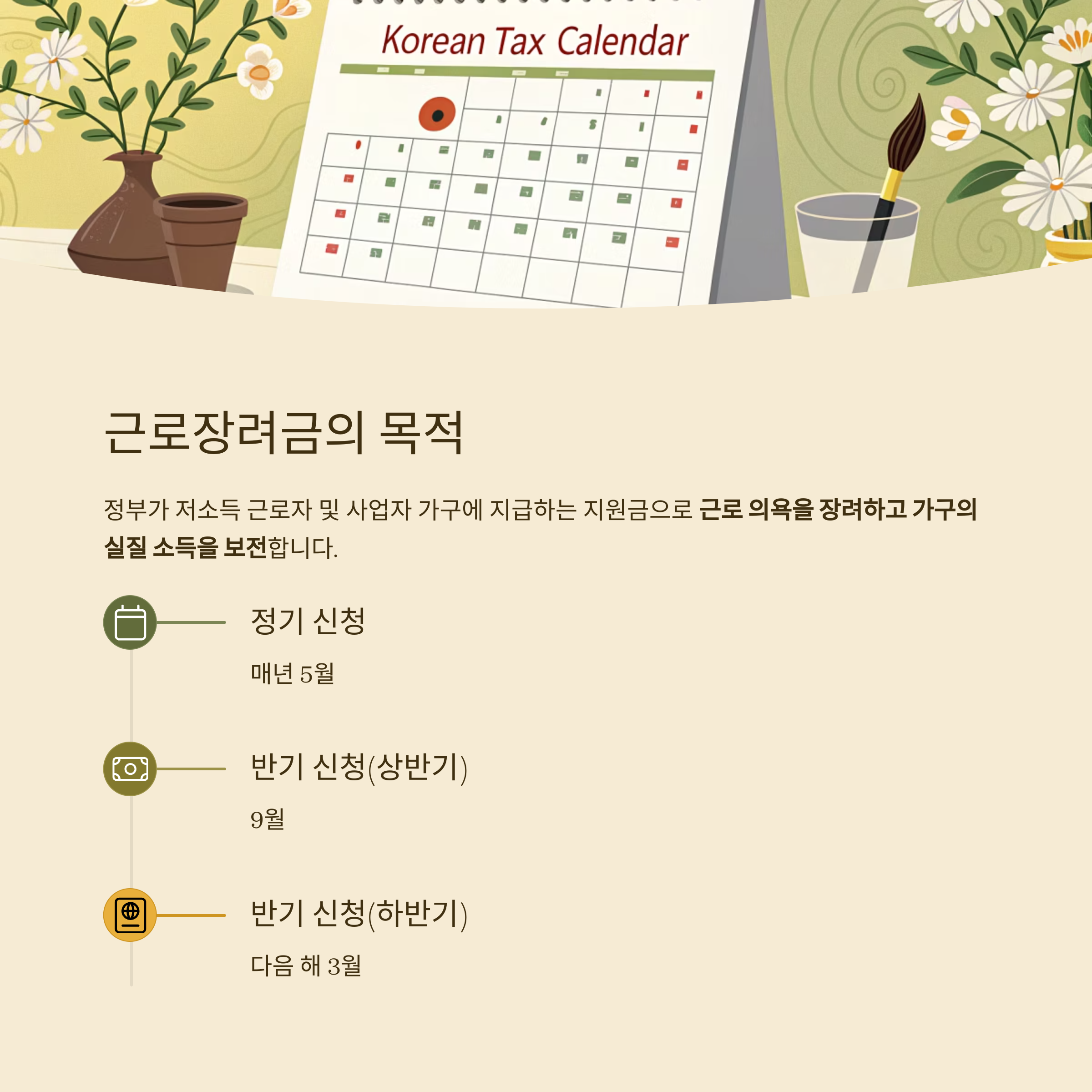 근로장려금은 저소득 가구의 근로 의욕을 높이고 실질 소득을 보조하기 위해