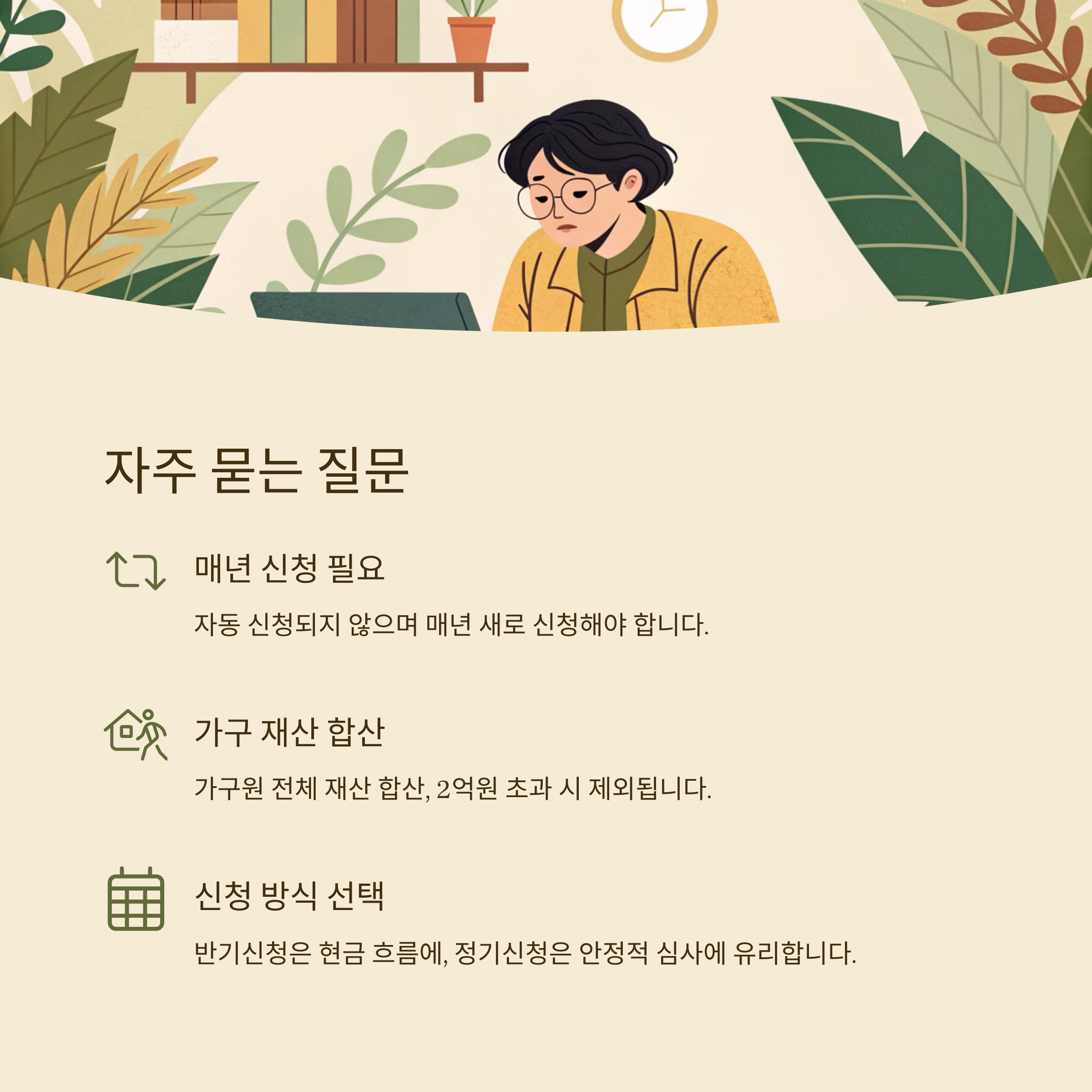 지원은 한 번의 신청만으로 이뤄지지 않으며 매년 갱신 신청이 필요합니다.