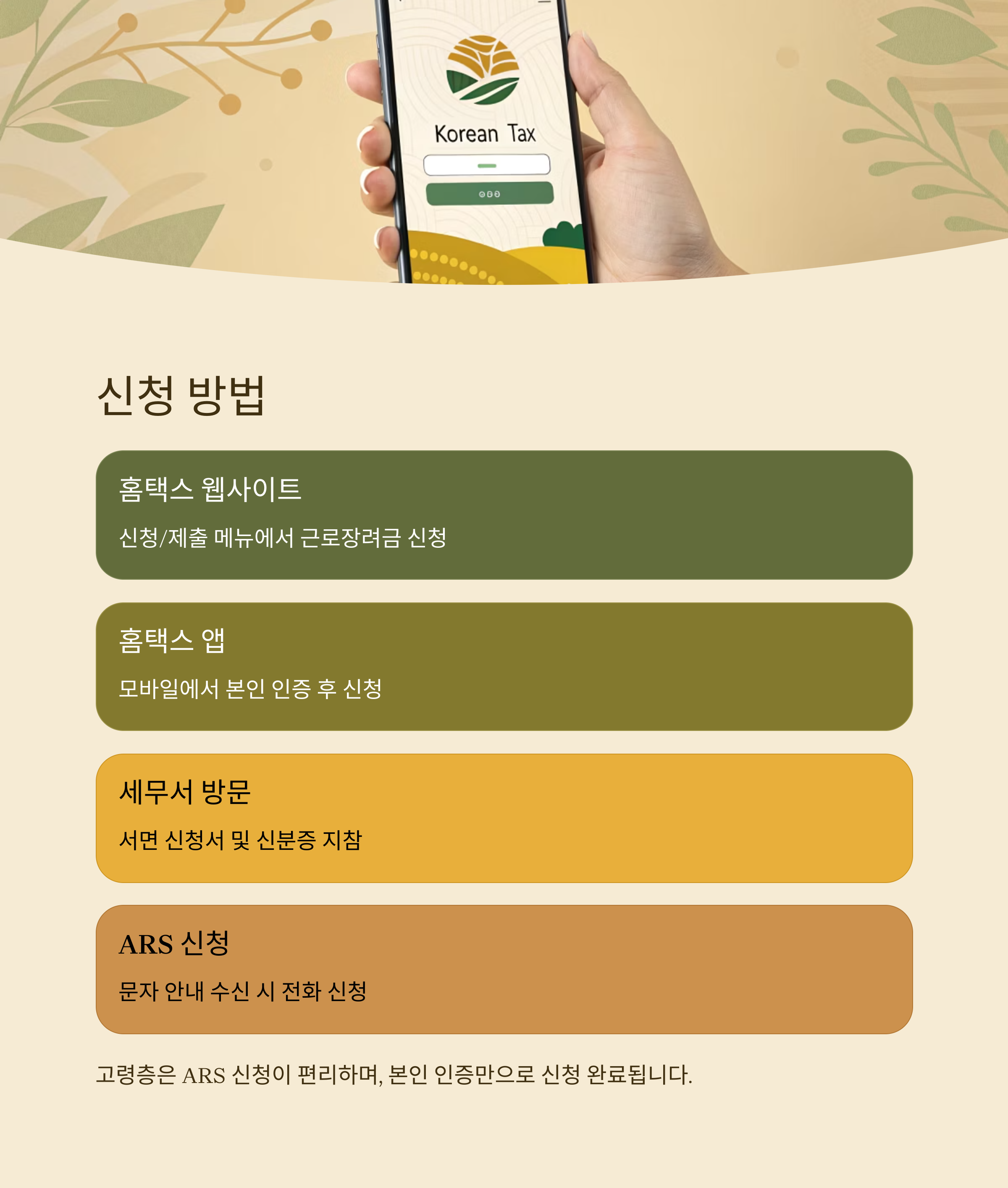 | 홈택스 앱 | 모바일에서도 본인 인증 후 신청 가능 |